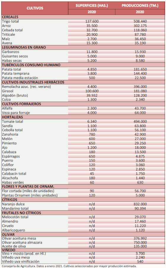 Fuente: Consejeria de Agricultura, Ganadería, Pesca y Desarrollo Sostenible, Junta de Andalucía.
