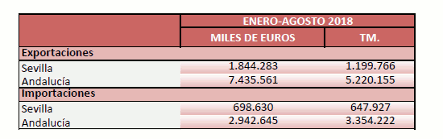 Balanza comercial agroalimentaria de la provincia de Sevilla. Enero-Agosto 2018
