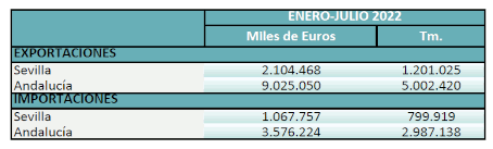 Balanza comercial agroalimentaria de la provincia de Sevilla. Enero-Julio 2022