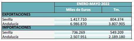 Balanza comercial agroalimentaria de la provincia de Sevilla. Enero-Mayo 2022