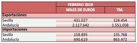 Balanza comercial agroalimentaria de la provincia de Sevilla. Febrero 2019