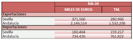 Balanza comercial agroalimentaria de la provincia de Sevilla. Febrero 2020