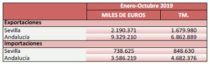 Balanza comercial agroalimentaria de la provincia de Sevilla. Octubre 2019