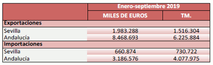 Balanza comercial agroalimentaria de la provincia de Sevilla. Septiembre 2019