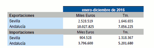 Datos sobre Balanza comercial agroalimentaria de la provincia de Sevilla. Diciembre 2016