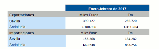 El valor de las exportaciones de productos agroalimentarios de la provincia de Sevilla creció un 6,45% en el periodo enero-febrero de 2017