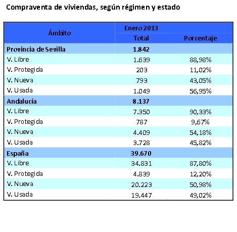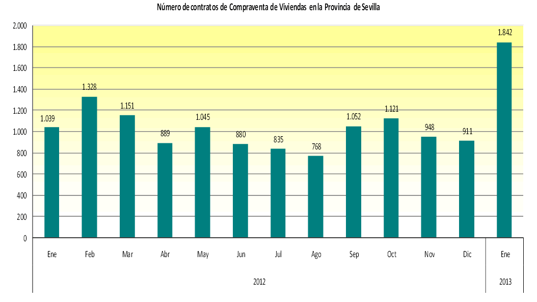 Hay un gran incremento en Enero de 2013, del 102,2%, en la compraventa de viviendas en la provincia de Sevilla con respecto al mes pasado