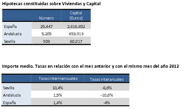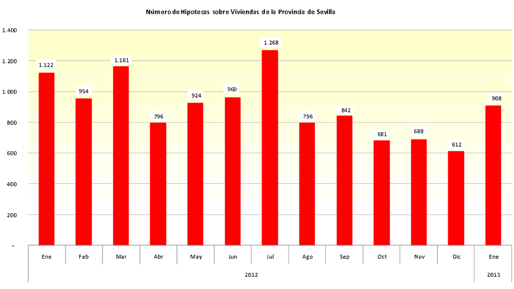 El número de las hipotecas sobre viviendas en la provincia de Sevilla crece en Enero de 2013 un 48,4% en relación con el mes anterior
