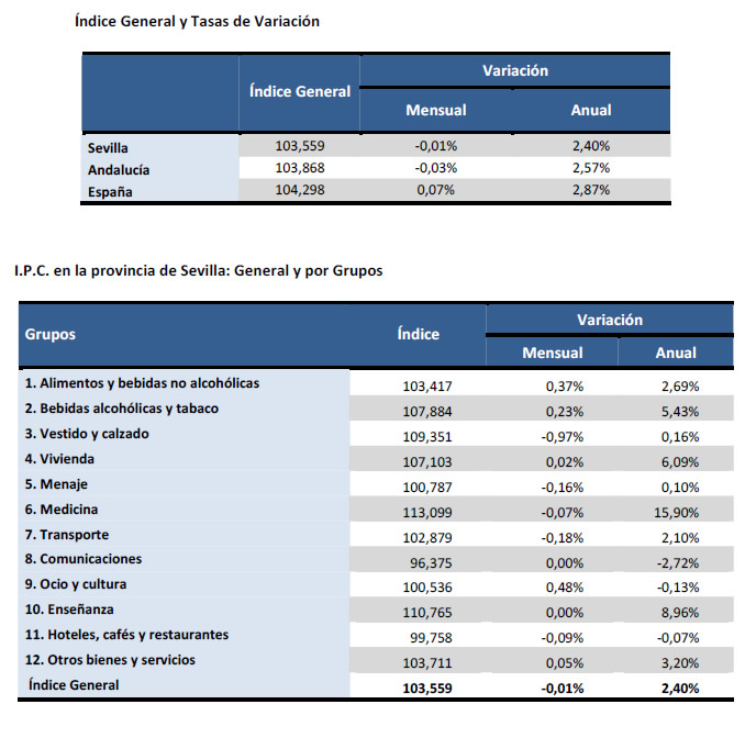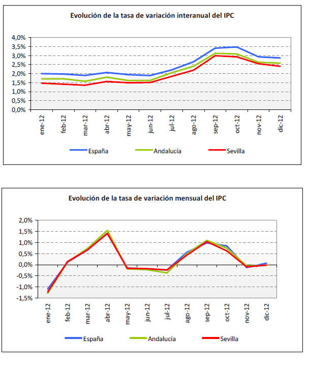 Leve descenso de la inflación en la provincia de Sevilla en Diciembre de 2012