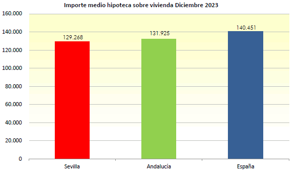 En diciembre de 2023, el número de hipotecas sobre viviendas en la provincia de Sevilla es de 1.085, un 31,5% menos que en el mismo mes del año anterior, y un 12,6% menos que en el mes anterior