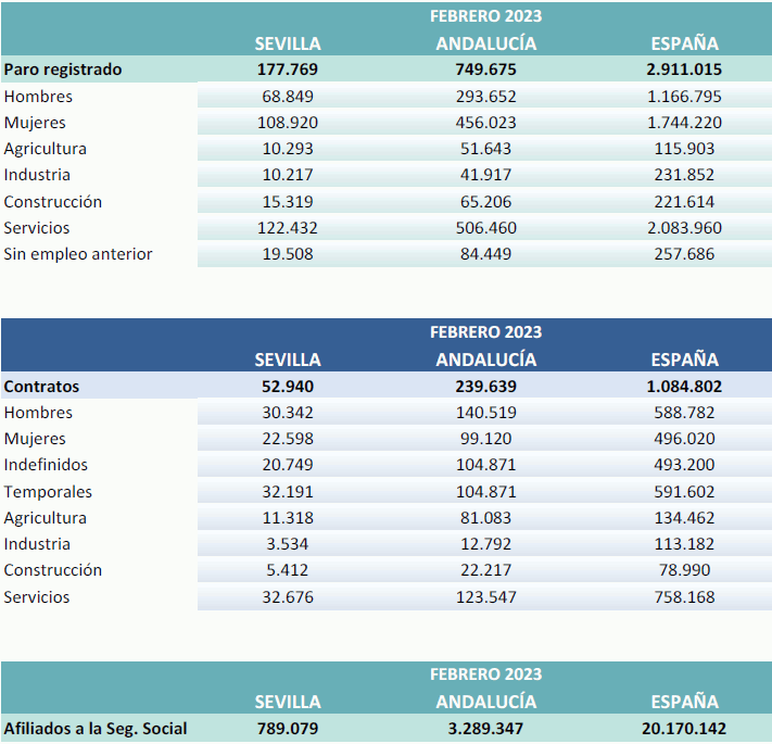 Datos sobre paro registrado y contratos. Febrero 2023