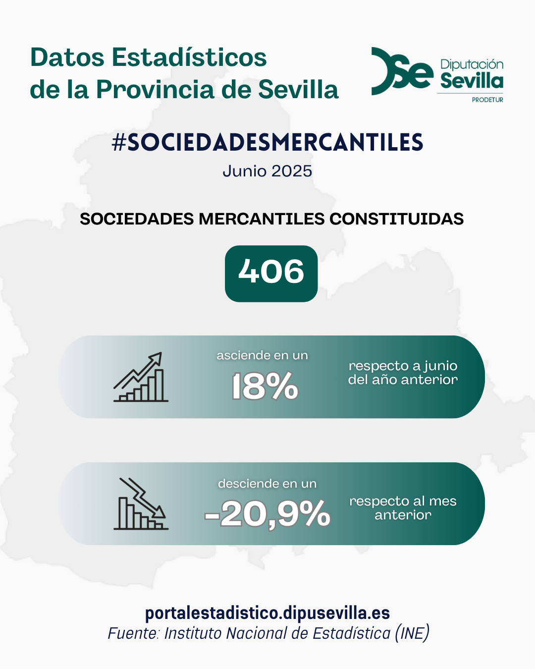 En junio de 2025 se han creado en la provincia de Sevilla 406 sociedades mercantiles, un 18% más que en el mismo mes del año anterior, y un 20,9% menos respecto al mes anterior
