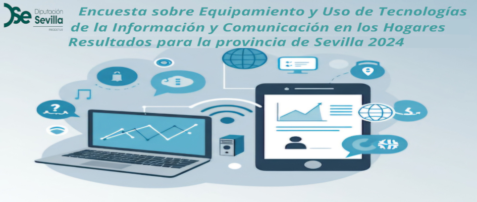 La Encuesta sobre Equipamiento y Uso de Tecnologías de la Información y Comunicación en los hogares. Resultados para la provincia de Sevilla. 2024 es una explotación y publicación de la información contenida en la Encuesta sobre equipamiento y uso de Tecnologías de Información y Comunicación (TIC) en los hogares de Andalucía correspondientes al año 2024 del Instituto de Estadística y Cartografía de Andalucía. En este producto estadístico se ofrece información acerca del equipamiento del hogar en TIC (teléfono, equipamiento informático, acceso a Internet) y la utilización de los residentes de esas viviendas de Internet, de su relación con las administraciones públicas y comercio electrónico. El cuestionario es dinámico e incluye nuevos apartados con diferente periodicidad.