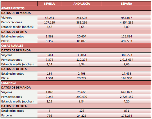 En Abril de 2019, el número de viajeros alojados en los establecimientos extrahoteleros de la provincia de Sevilla aumenta un 17,56% respecto al mismo mes del año anterior