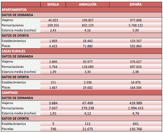 En Octubre de 2018, las pernoctaciones de los viajeros alojados en los establecimientos extrahoteleros de la provincia de Sevilla crecen el 19,43% respecto al mismo mes del año pasado