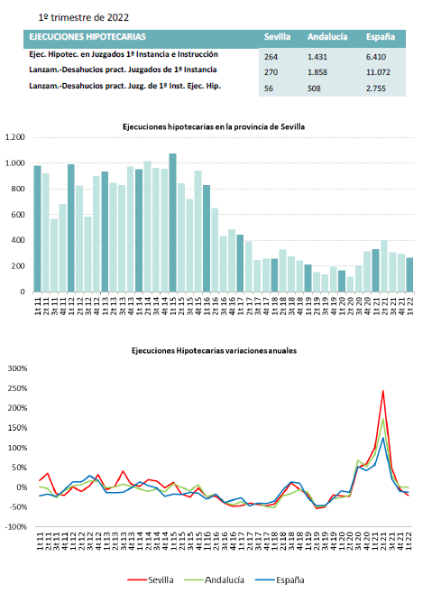 Datos sobre ejecuciones hipotecarias. 1er Trimestre de 2022