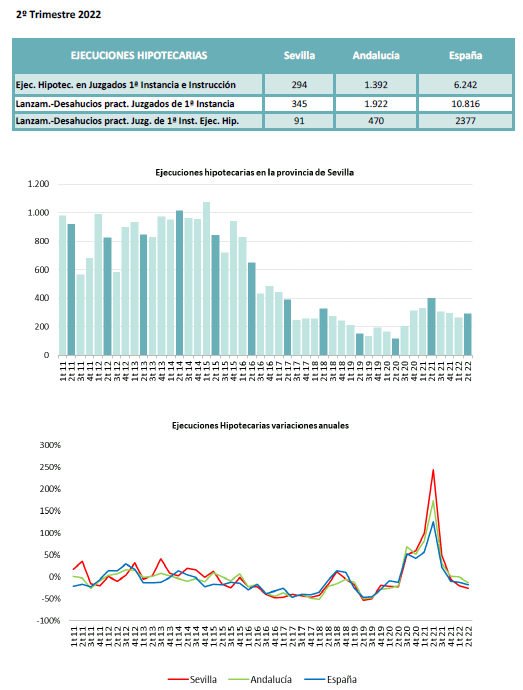 Datos sobre ejecuciones hipotecarias. 2º Trimestre de 2022