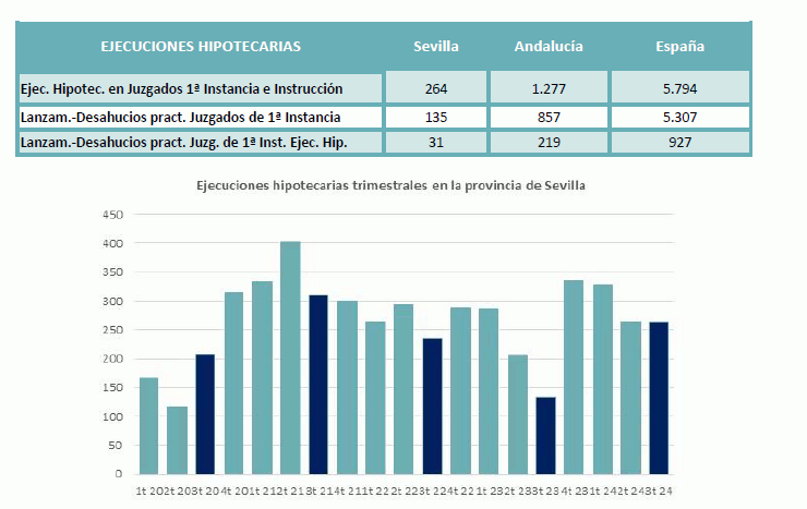 En el 3er Trimestre de 2024 se han iniciado 264 procedimientos de ejecuciones hipotecarias, y se han practicado 31 lanzamientos finales sobre este tipo de procedimientos